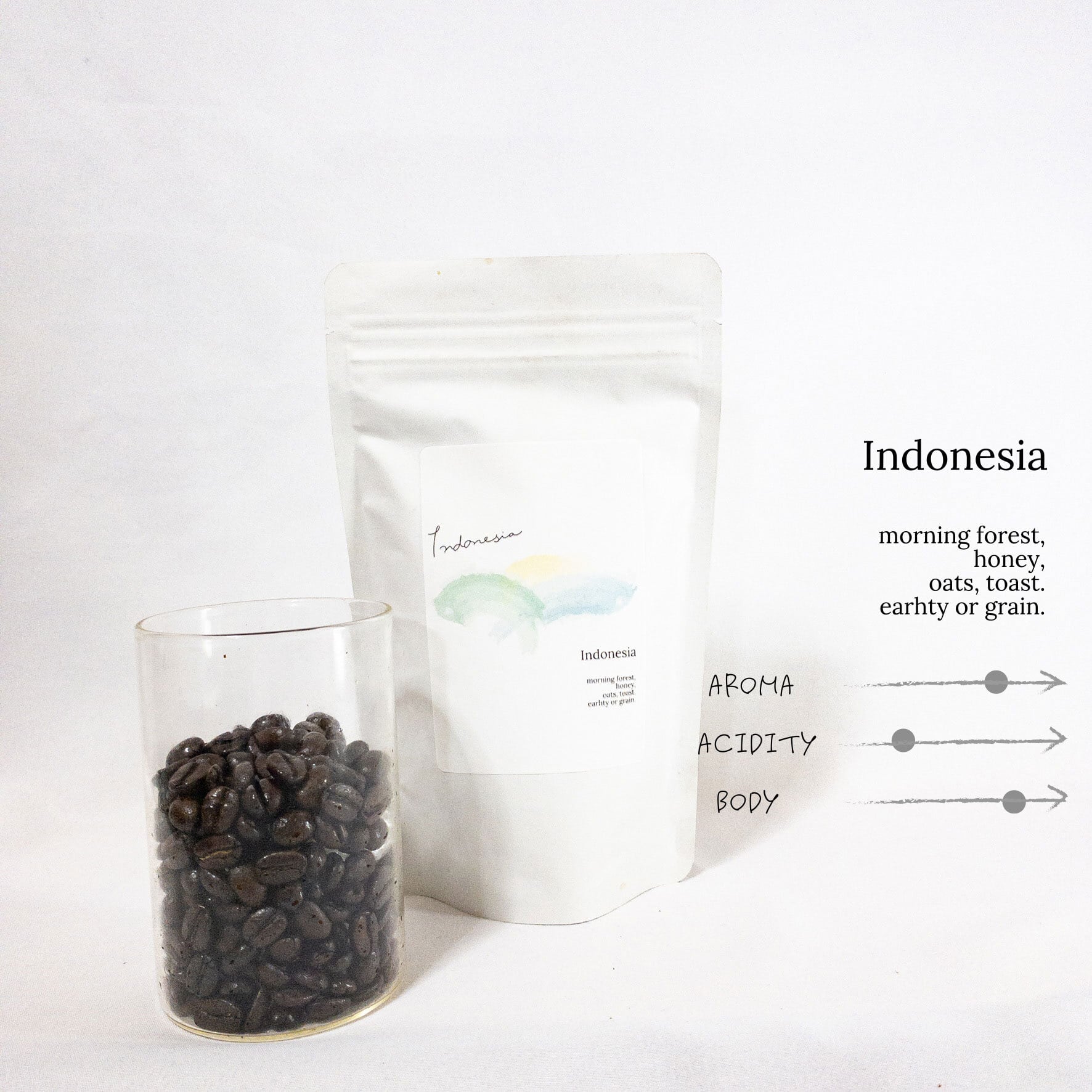 ハチミツのような甘さ、トーストやオーツのような穀物を感じるやさしい風味、インドネシアコーヒー特有の大地を感じさせる香りや風味をもつコーヒーです。